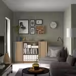 Используйте эту горизонтальную комбинацию с открытыми полками и глухими дверцами, чтобы красиво расставить любимые вещи.