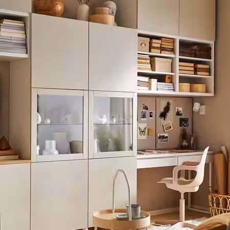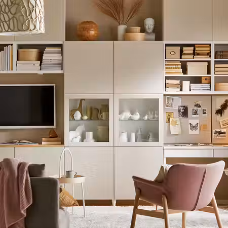 Ненужные вещи, которые часто валяются в беспорядке, можно спрятать, а любимые предметы выставить на всеобщее обозрение за стеклянными дверцами.