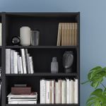 Стеллаж снабжен дополнительной верхней полкой: вы можете максимально задействовать поверхность стены. Съемные полки; устанавливайте на разном уровне в соответствии с необходимостью. Отделка из шпона.