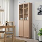 Стеллаж, панельные, стеклянные двери, 80x30x202 см, дубовый шпон, беленый IKEA BILLY БИЛЛИ включает в себя следующие материалы:
