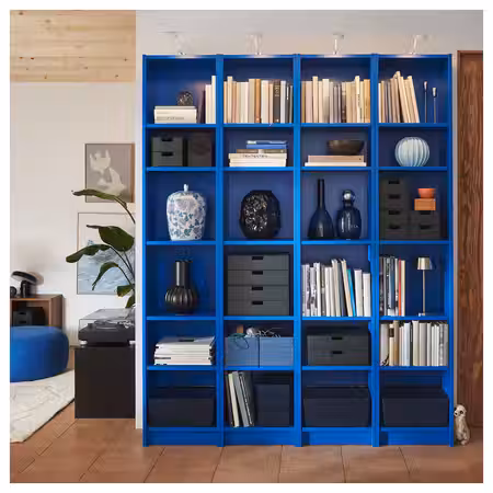 Простой и неизменно актуальный дизайн стеллажа БИЛЛИ легко адаптировать под себя при помощи коробок, подсветки и ваших любимых вещей.