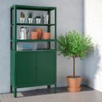 Можно использовать в помещении и на улице.Регулируемые ножки обеспечат устойчивость даже на неровном полу.Стеллаж и шкаф изготовлены из стали с порошковым покрытием, что обеспечивает прочность, простоту в уходе и защиту от ржавчины.