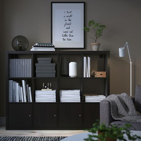 KALLAX 090.174.83 Стеллаж с 4 вставками, черно-коричневый 147x147 см