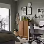 Одного модуля вполне достаточно для тесного пространства, а все вещи, которые не хотите показывать, можно спрятать за панельными дверями.