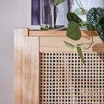 Прочный массив сосны, из которого изготавливается мебель для хранения ИВАР, обладает выразительной фактурой с вариациями цвета и рисунка поверхности, что придает каждому предмету уникальный облик.