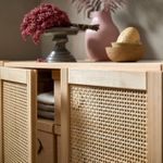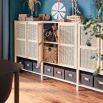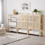 Двери устанавливаются на боковые стойки стеллажа — простой и эффективный способ организовать закрытое хранение и придать стеллажу новый облик.Бамбуковое плетение в середине двери можно легко заменить постером или картиной.