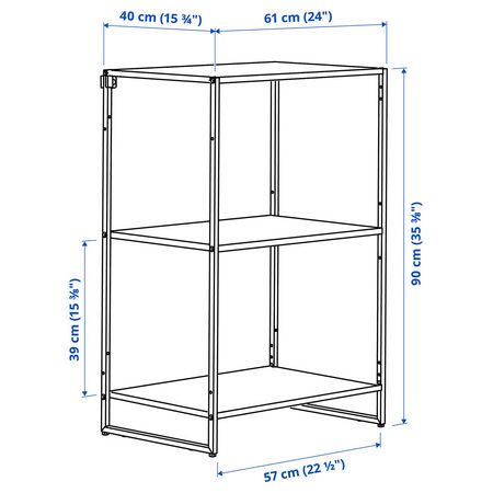 Стеллаж изготовлен из стали с порошковым покрытием, что обеспечивает прочность, простоту в уходе и защиту от ржавчины.