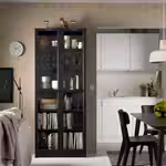 Стеклянные двери превращают стеллаж в красивую витрину, где ваши любимые вещи будут надежно защищены от пыли.