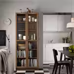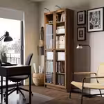 Стеклянные двери превращают стеллаж в красивую витрину, где ваши любимые вещи будут надежно защищены от пыли.