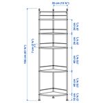 Угловой стеллаж занимает мало места на полу, но на его полках поместится множество туалетных принадлежностей.