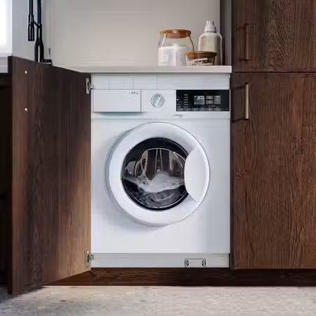 Удобный бытовой прибор «2-в-1»: стиральная/сушильная машина с программой обработки паром и другими функциями легко адаптируется к любым вашим потребностям в стирке. Если вы захотите ее спрятать, просто установите ее в шкаф с дверцей.