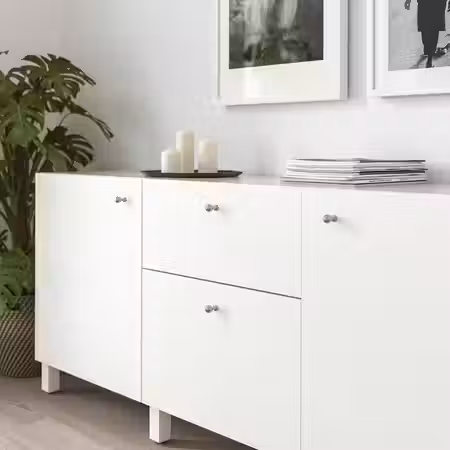 Фасады СТЕНСУНД белого цвета привносят нотку загородной жизни — благодаря обрамленной передней части и рифленым панелям, создающим непринужденный ремесленный стиль.