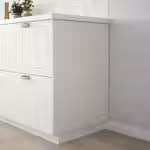 Накладная панель сочетается с дверцами и фронтальными панелями СТЕНСУНД белого цвета, подчеркивая сельское очарование интерьера.