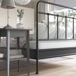 Кровать КЛЕППСТАД — это стильный современный дизайн с металлическим каркасом и уютным изголовьем с тканевой обивкой.