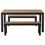 Стол (длина 160 см, ширина 100 см, высота 75 см). Скамья (ширина 130 см, глубина 36 см, высота 43 см).