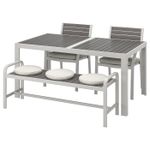 Особенности «SJÄLLAND ШЭЛЛАНД Стол + 2 стула + скамья, для сада - темно-серый/ФРЁСЁН/ДУВХОЛЬМЕН бежевый 156x90 см» отмеченные производителем IKЕА: