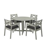Комплект садовой обеденной мебели на 4 человека выполнен в традиционном стиле. Очень мягкие подушки темно-серого цвета не выцветают и имеют водоотталкивающее и противоскользящее покрытие.