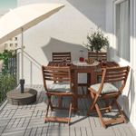 Особенности «ÄPPLARÖ ЭПЛАРО Стол + 4 складных стула, для сада - коричневая морилка/Куддарна серый» отмеченные производителем IKЕА: