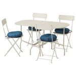 Стол + 4 складных стула, для сада САЛЬТХОЛЬМЕН, бежевый, Иттерон синий