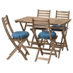 Стол + 4 стула, для сада АСКХОЛЬМЕН, серо-коричневая морилка, Иттерон синий