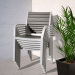 До 6 стульев можно ставить друг на друга, что позволяет экономить место при храненииОтверстие в центре столешницы позволяет установить зонт от солнца.Легко поддерживать в чистоте – достаточно протереть влажной тканью.