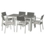 Особенности «SJÄLLAND ШЭЛЛАНД Стол + 6 кресел, для сада - темно-серый/Куддарна серый 156x90 см» отмеченные производителем IKЕА: