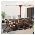 Откидные столешницы легко установить и убрать, что позволяет регулировать размер стола по необходимости. Отверстие в центре столешницы позволяет установить зонт от солнца.