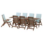 Стол + 8 кресел для сада, коричневая морилка, Нэстон голубой