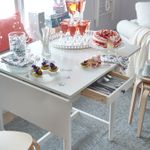 Удобный ящик под столешницей для хранения столовых приборов, салфеток или свечей.