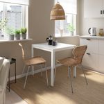 Компактный стол – идеальное решение даже для небольшого помещения. Устойчивый металлический каркас и прочная гладкая меламиновая столешница. Техника плетения из ротанга используется в производстве стульев уже много лет.