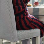 Чехол надевается на весь стул целиком и фиксируется застежками-липучками, поэтому его легко снять и снова надеть.