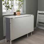 2 откидные столешницы позволяют регулировать размер стола для 2–4 человек. В практичном отделении для хранения под столешницей все необходимое будет под рукой, но не на виду. Во вместительном отделении под столешницей достаточно места даже для двух складных стульев (например, ТЕРЬЕ, ГУНДЕ и НИССЕ), которые вы сможете быстро достать, если неожиданно нагрянут гости. Все необходимое — журналы, планшет, очки, конфеты и зарядки — можно хранить в боковых карманах. Плотная ткань и прочный металлический каркас обеспечат сохранность предметов, которые вы положите в отделение под столешницей. Спрячьте удлинители в пространстве между отделением для хранения и столешницей. Используйте застежки-липучки на ножках стола, чтобы закрепить провода. Удобный доступ к удлинителям через открытые стороны и 2 прорезных отверстия в ткани. Отличное решение для зарядки планшетов и смартфонов. Устойчивый металлический каркас и прочная гладкая меламиновая столешница. Пенополиуретановый наполнитель сиденья и спинки и прочная, но мягкая и гладкая ткань обивки стула позволят вам дольше наслаждаться приятной трапезой и общением с близкими. Не беспокойтесь о том, что чехол может испачкаться во время обеда, его в любой момент можно снять и постирать в машине. Чехол надевается на весь стул целиком и фиксируется застежками-липучками, поэтому его легко снять и снова надеть. Регулярно проветривайте и стирайте чехол, чтобы сохранить свежесть и чистоту, а также не накапливать пыль и грязь в доме. Прочный и устойчивый каркас стула из массива дерева. Стулья без подлокотников можно придвинуть вплотную к столу, чтобы они не занимали место.