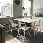 2 откидные столешницы позволяют регулировать размер стола для 2–4 человек. В практичном отделении для хранения под столешницей все необходимое будет под рукой, но не на виду. Во вместительном отделении под столешницей достаточно места даже для двух складных стульев (например, ТЕРЬЕ, ГУНДЕ и НИССЕ), которые вы сможете быстро достать, если неожиданно нагрянут гости. Все необходимое — журналы, планшет, очки, конфеты и зарядки — можно хранить в боковых карманах. Спрячьте удлинители в пространстве между отделением для хранения и столешницей. Используйте застежки-липучки на ножках стола, чтобы закрепить провода. Удобный доступ к удлинителям через открытые стороны и 2 прорезных отверстия в ткани. Отличное решение для зарядки планшетов и смартфонов. Плотная ткань и прочный металлический каркас обеспечат сохранность предметов, которые вы положите в отделение под столешницей. Устойчивый металлический каркас и прочная гладкая меламиновая столешница. Стул продается в собранном виде, поэтому вы можете начать пользоваться им сразу же после покупки. Стул можно сложить, что позволяет экономить место при хранении. Благодаря отверстию в спинке стул можно повесить на стену, что позволяет экономить место при хранении.