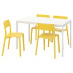 Стол и 4 стула, белый, желтый 125 см IKEA MELLTORP МЕЛЬТОРП / JANINGE ЯН-ИНГЕ включает в себя следующие материалы: