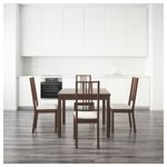 Стол (мин. длина 90 см, длина 129 см, макс. длина 168 см, ширина 90 см, высота 74 см). Стул (ширина 44 см, глубина 55 см, высота 100 см, высота сиденья 47 см, ширина сиденья 37 см, глубина сиденья 41 см).
