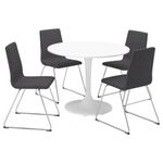 Круглый стол с плавными линиями создает в комнате располагающую атмосферу. Металлический каркас обеспечивает особую устойчивость. Сиденье и спинка с набивкой обеспечивают отличную опору для тела.