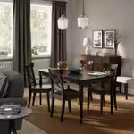 Этот стол на 4 человек легко разложить с помощью вкладной доски, чтобы за ним комфортно разместились 6 человек.