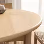 В 4-местный комплект столовой мебели в современном стиле входят деревянный стол покрытый светлой морилкой, который можно раздвинуть на 6 человек, и деревянные стулья с мягкой набивкой сиденья и удобной изогнутой спинкой.