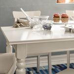 Массив дерева – износостойкий натуральный материал. Поверхность, покрытая прозрачным лаком, проста в уходе. Размер стола легко изменить. Благодаря вкладной доске, хранящейся под столешницей, за столом могут сидеть от 4 до 6 человек.