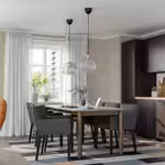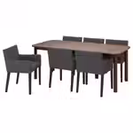 6-местная обеденная группа включает в себя раскладной стол из дерева и металла, рассчитанный на 4, 6 или 8 человек, и стулья с современным дизайном и съемными моющимися чехлами.