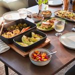 Размер этого стола «3 в 1» легко регулируется на 4, 6 или 8 человек с помощью прилагающихся вкладных досок. А если добавить стульев и по коротким сторонам стола, вы сможете рассадить до 10 гостей.
