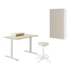 Стол и комбинация для хранения, и рабочий стул бежевый, белый IKEA TROTTEN/LIDKULLEN ТРОТТЕН/ЛИДКУЛЛЕН / BESTÅ/LAPPVIKEN БЕСТО/ЛАППВИКЕН включает в себя следующие материалы: