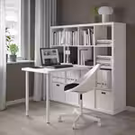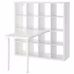 Столешницу и ножки можно прикрепить к стеллажу КАЛЛАКС при помощи фурнитуры ИНЛЭГГ.