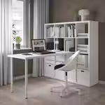 Столешницу и ножки можно прикрепить к стеллажу КАЛЛАКС при помощи фурнитуры ИНЛЭГГ.