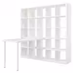 Столешницу и ножки можно прикрепить к стеллажу КАЛЛАКС при помощи фурнитуры ИНЛЭГГ.
