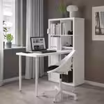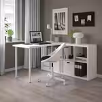 Столешницу и ножки можно прикрепить к стеллажу КАЛЛАКС при помощи фурнитуры ИНЛЭГГ.