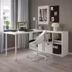Столешницу и ножки можно прикрепить к стеллажу КАЛЛАКС при помощи фурнитуры ИНЛЭГГ.