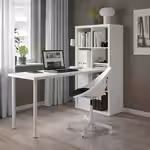 Столешницу и ножки можно прикрепить к стеллажу КАЛЛАКС при помощи фурнитуры ИНЛЭГГ.
