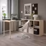 Столешницу и ножки можно прикрепить к стеллажу КАЛЛАКС при помощи фурнитуры ИНЛЭГГ.
