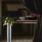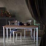 Столешница из шпона твердых пород древесины покрыта лаком и позволяет оценить всю красоту натурального дуба.Белые круглые стальные ножки в традиционном стиле имитирующие дерево, обеспечивают столу устойчивость и долговечность.На 4 человека.